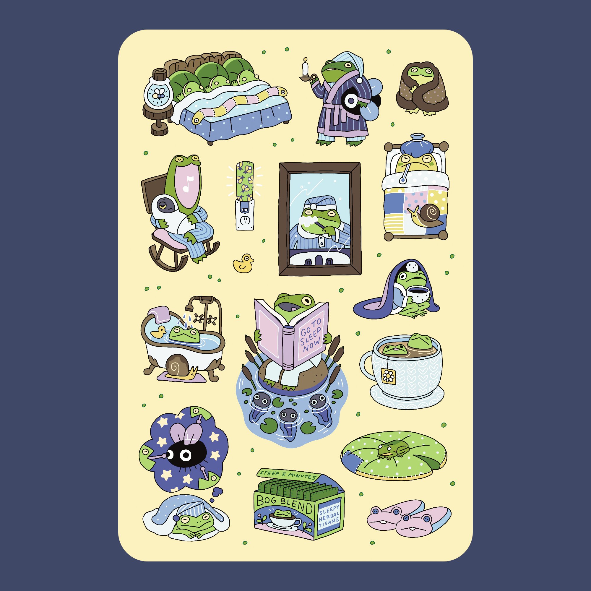 Vinyl Sticker Set: Bed Time Frogs